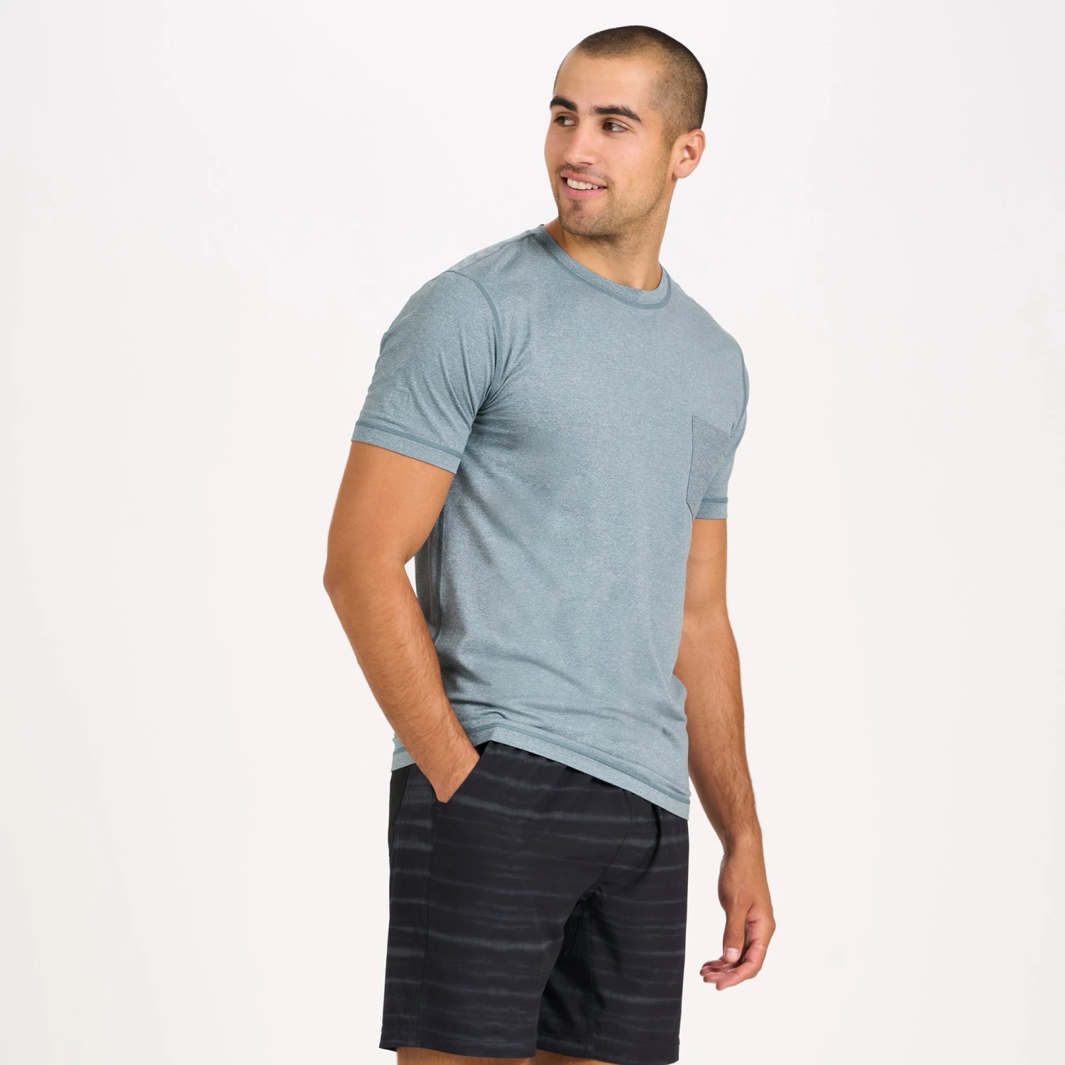 The Tradewind Performance Tee is the most technical tee in the lineup, with perforated performance knit, UPF and quick-drying capabilities. Light and breathable, the flatlock seams and chest pocket allow for easy transition into everyday life.